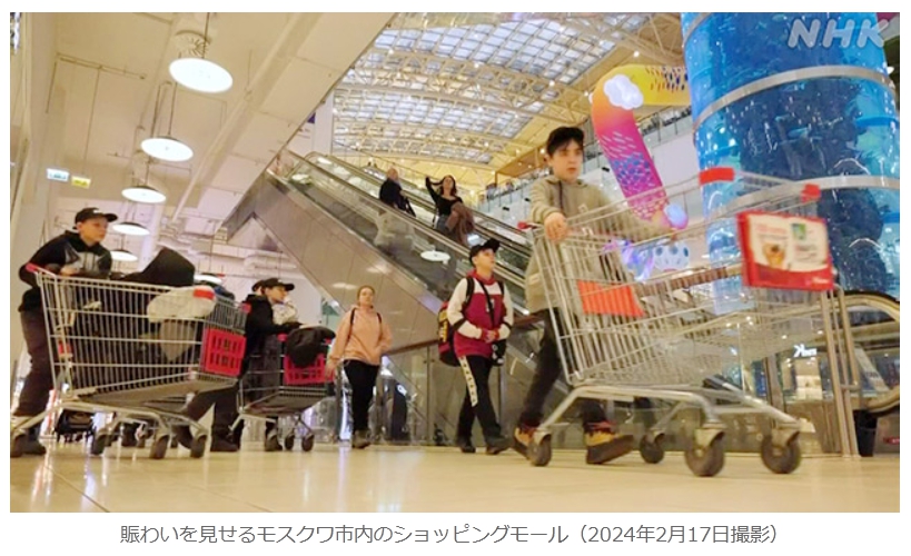 賑わいを見せるモスクワ市内のショッピングモール(2024年2月17日撮影)