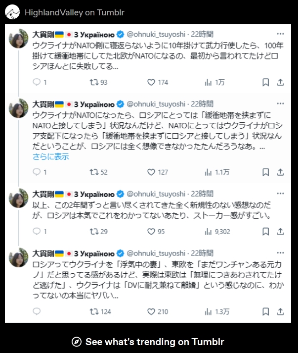 ロシア人のなかにうんざり感が広がっているのは広がっていても、もう戦争はやめようという方向に大多数の声が向かっていかない。ロシア、ウクライナ双方がうんざりしながらも、戦争はやっぱり継続していくということが予想されると思うんですよね。