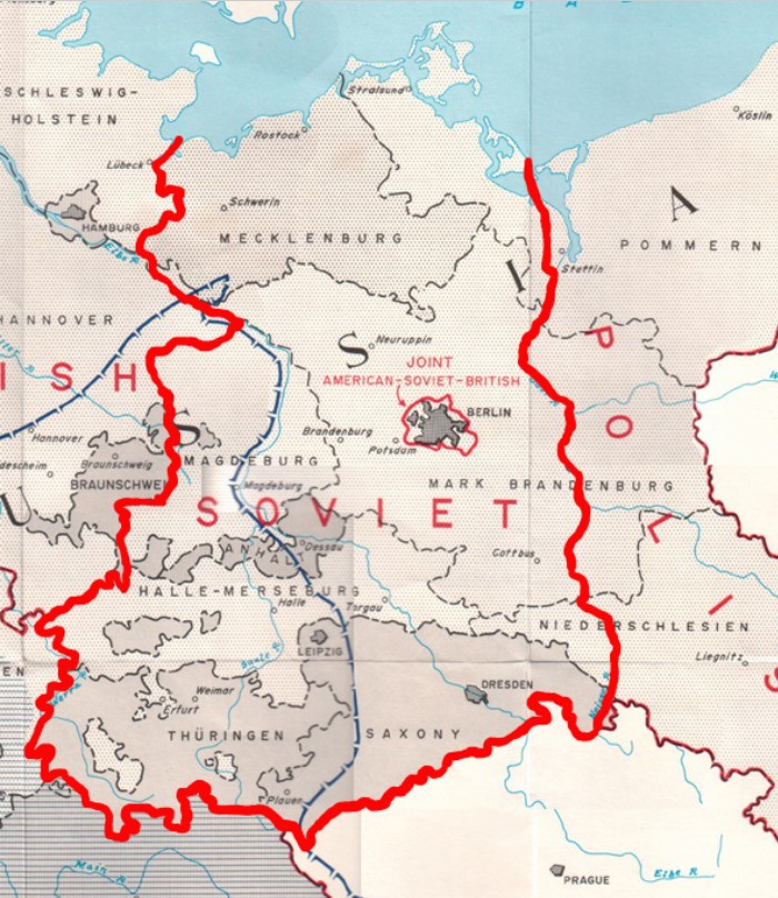 ソビエト占領地域(赤枠内)に存在したドイツ国の州(1945年)