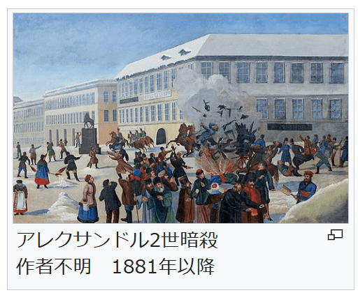 この後、ナロードニキの一部は「土地と自由」を結成して運動を継続するが、彼らの革命運動は過激化し、官吏を狙った暗殺事件が相次ぎ、1879年にはアレクサンドル2世も標的となった[172]。政府の弾圧により多数の活動家が逮捕され、またテロリズム路線の是非を巡って「土地と自由」も「人民の意志」派と「土地総割替」派とに分裂した[167][173]。1881年2月には冬宮にダイナマイトを仕掛けられる事件が起き[174]、そして、3月1日、テロによる政治革命を標榜する「人民の意志」派がアレクサンドル2世に対する爆弾テロを成功させた[175](アレクサンドル2世暗殺事件 (1881年))。