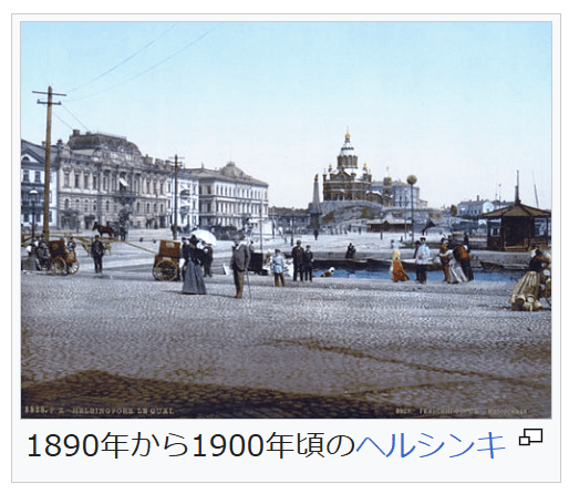 1890年から1900年頃のヘルシンキ アレクサンドル2世(在位1855年 – 1881年)の大改革の際の1863年に身分制議会が約半世紀ぶり召集されて議会制度が機能しはじめ、この時期にフィンランド語の国語化、農民の地位向上、初等教育制度の確立といった諸改革が行われた[292]。1860年代から1870年代に自由主義的な規制緩和立法の元でフィンランドの工業生産は急成長して、ロシア帝国内で最も進んだ地域となった[293]。