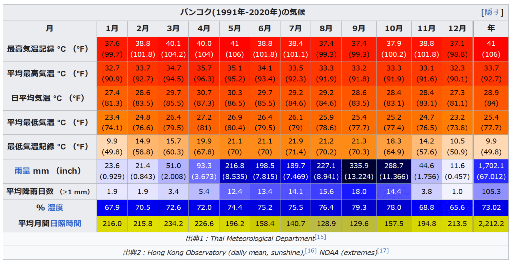 ^ “バンコクの気候と服装”. バンコクナビ. 2020年5月23日閲覧。