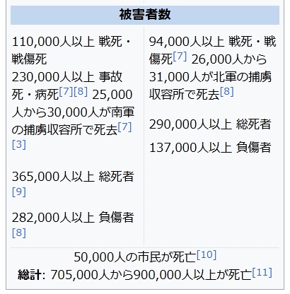 ^ Nofi, Al (2001年6月13日). “Statistics on the War's Costs”. Louisiana State University. 2007年7月11日時点のオリジナルよりアーカイブ。2007年10月14日閲覧。