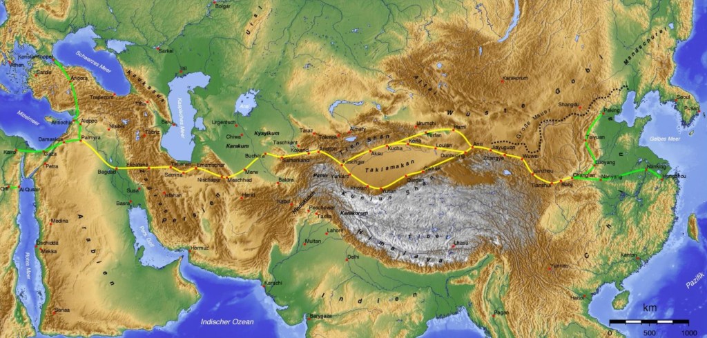 交易路を介して、最初に感染が広まったのは大きな商業都市だった。そこから近隣の町や村へと放散し、さらに田舎へと広がった。中世の主な巡礼路も黒死病を運び、各地の聖地は、地域内、国内、国家間の伝染の中心地になった。