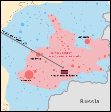 米国の情報当局者はマレーシア航空MH17便が親ロシア分離主義者により誤って撃墜された可能性があるとの見解を示し[186]、分離主義者がブーク地対空ミサイルを発射したという証拠を挙げた。この当局者は、その反政府勢力が親ロシア分離主義に寝返った元ウクライナ軍の隊員だった可能性があると主張したほか[21]、MH17が回避行動を取ったというロシア側の主張を否定し、ウクライナ政府には反乱軍の支配する地域にこうしたミサイルシステムがないため、ウクライナ政府がMH17を撃墜したとの主張は現実的ではないと主張した[157]。イギリス外務省は、ロシアの支援を受けた分離主義者によって支配された地域からミサイルが発射された可能性が「非常に高い」と主張した[187]。