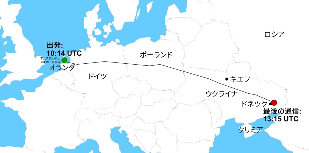 スキポール空港から墜落地点までの当日の航路