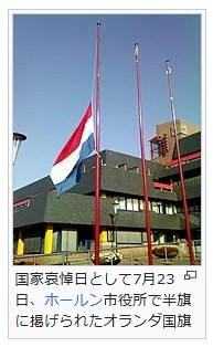 国家哀悼日として7月23日、ホールン市役所で半旗に掲げられたオランダ国旗