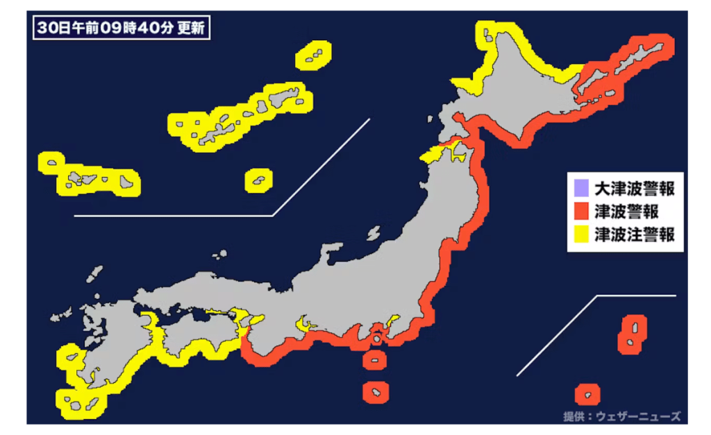 海外の遠方で起きた地震に伴って津波警報が発令されるのは、2010年にチリで発生した地震以来15年ぶり。海外で発生した地震による警報は長引く傾向があるとして、解除までに半日から1日ほどかかるとの見通しを示した。
