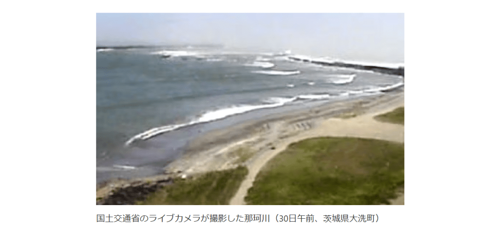 このほか青森県八戸市や仙台市などで40センチ、岩手県大船渡市、北海道根室市花咲、釧路市などで30センチ。また宮城県金華山沖でも津波を観測しており、沿岸部に津波が到達していると推定されるため警戒を呼びかけている。