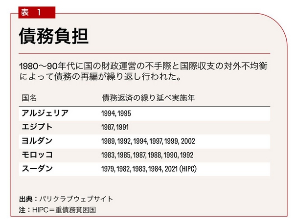 チュニジアは「アラブの春」を経験し、民主主義とガバナンスの向上に向け前進しているように見える唯一の国として際立っている。しかし、雇用と補助金を提供する政府の役割が増したことが、経済と財政を襲った新型コロナウイルスによるショック(Mazarei and Loungani 2023)と重なり、チュニジアの基盤を揺るがしている。当局は費用を負担しきれないときでさえ、安定した為替レートの維持を主張した。これが海外資金の流入に依存する結果を招いた。主な資金源はチュニジアの民主化への移行を支援する公的債権者であった。しかし、最近の政治的な激変はチュニジアの民主化の進展をむしばみ、必要な改革の拒否と相まって、チュニジアの債務支払い能力を損ない、同国を容赦なく債務困難期へと導いている。
