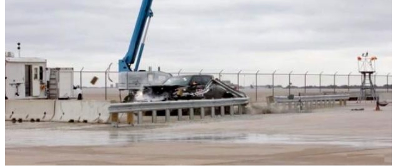 アメリカのネブラスカ大学で、ガードレールのクラッシュテストが行われた。
