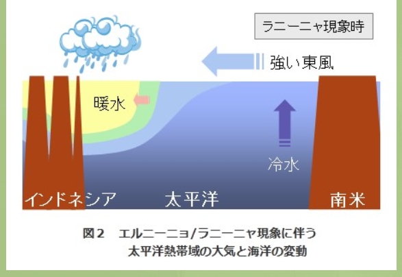 また、近年はエルニーニョ現象とは逆に、海面水温が低くなるラニーニャ現象も注目されるようになりました。