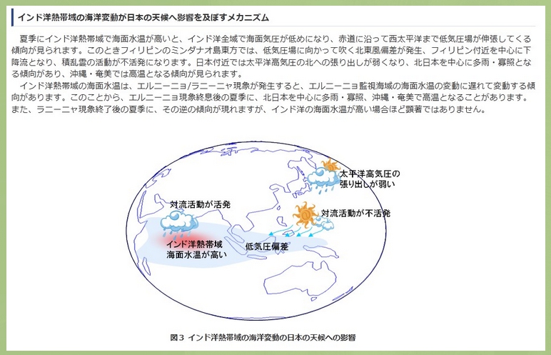 暖水プールと呼ばれるこの海域は世界で最も海水温が高く、この上の大気へ熱と水蒸気を供給することで対流活動を活発にし、積乱雲を発生させ大量の雨が降ります。