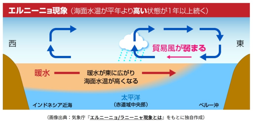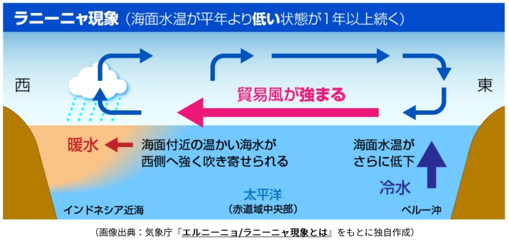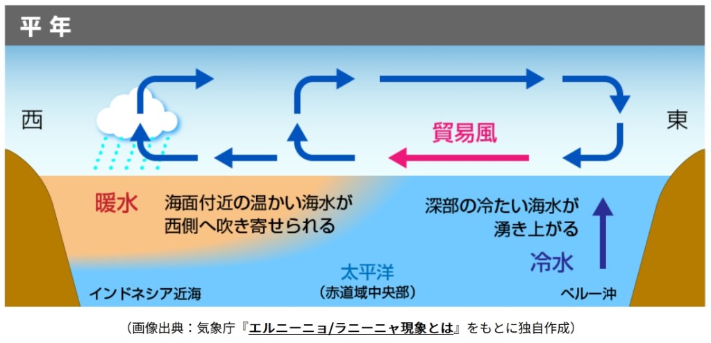 (画像出典:気象庁『エルニーニョ/ラニーニャ現象とは』をもとに独自作成)