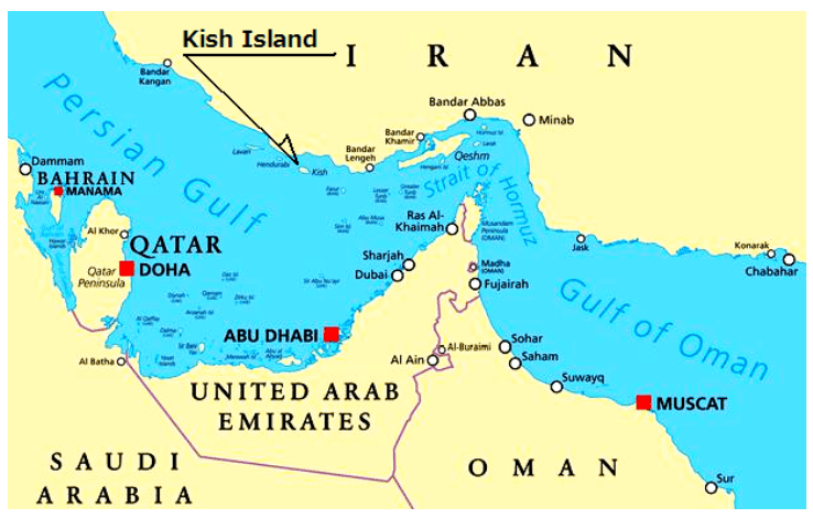 参照記事 参照記事 図中のイランの島とはペルシャ湾のキーシュ島Kish Islandで、観光地だったが、中国は軍用基地化を目的に手に入れたとの記事が2020年7月の記事にある。 』