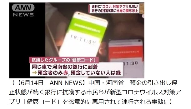 健康コードは、中国政府のコロナ対策の主要な柱となっている。習近平政権は「ゼロコロナ」政策を堅持しており、対策の正当性に疑念が生じかねないと警戒しているとみられる。【6月15日 産経】 ***********************