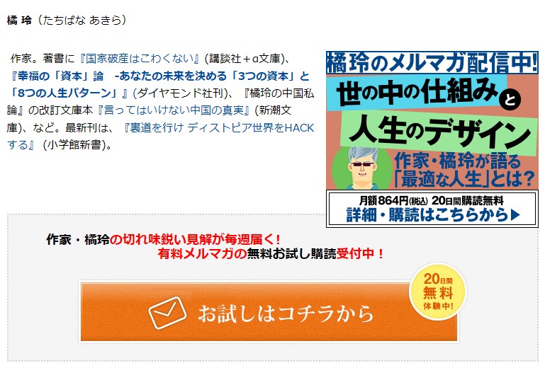 橘玲のメルマガ 世の中の仕組みと人生のデザイン 配信中 』