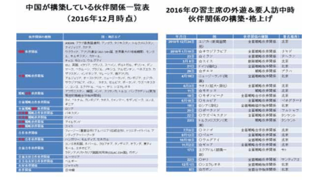 伙伴関係とは、中国とすでに一定の信頼関係を構築しており、重大な問題について、基本的には意見を異にしない関係を指すとされる。