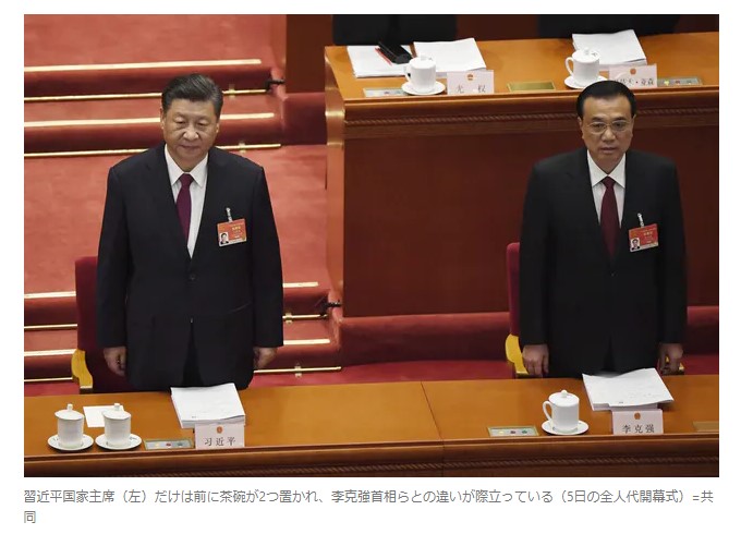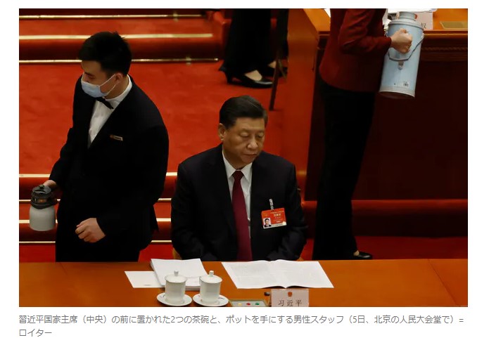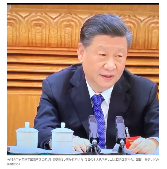 『中国が新型コロナウイルス禍に打ち勝った成果を誇った今回の全国人民代表大会(全人代)などでは、冒頭からギョッとする場面があった。国家主席の習近平(シー・ジンピン)が座る席の机上の様子である。会議中、お茶を飲むための蓋付き茶碗(ちゃわん)が、なぜか2つも置かれている。あらかじめ2客セットなのだ。