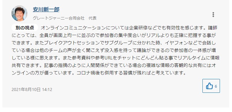 コミュニケーションのないさみしさについてはあまりにバカらしいとSNSでも話題になったが、一般社員20%に対し管理職は30%が感じている。部下の生産性・報連相・仕事のサボり・仕事ぶりを見れない期間の人事評価のしにくさといった不安があるからだろう。(参考・テレワークをしてみて、管理職の3割は「さみしい」 ITmedia 2020/04/26)