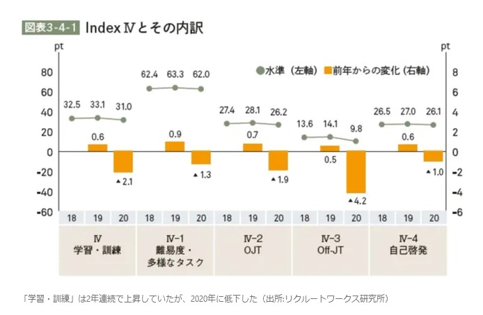 「学習・訓練」は2年連続で上昇していたが、2020年に低下した(出所:リクルートワークス研究所)