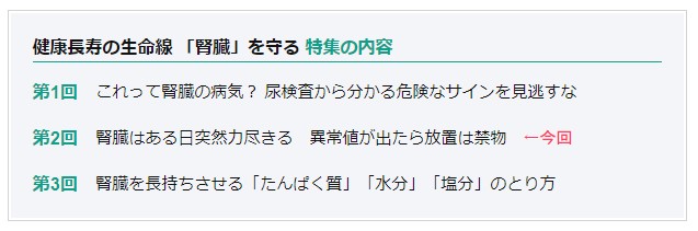健康長寿の生命線 「腎臓」を守る 特集の内容