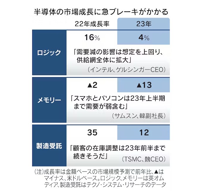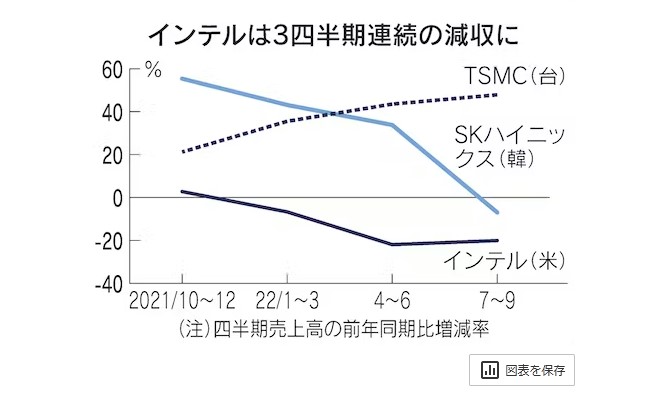 『しかし、日本は、この成長に大きく取り残された形だ。産業構造の変化に対応できなかった。市場が大きく変貌している様を見ずに、目先の価格競争やサプライチェーンの拡大ばかりに目を向けた。既存の製品のマイナーチェンジ、改良ばかりに目を奪われ、メモリからロジック(CPU)へと切り替わる時代の潮流をとらえることができなかったというわけだ。バブル崩壊の影響を受けて設備投資はほとんどなく、リストラなどが相次いだ。