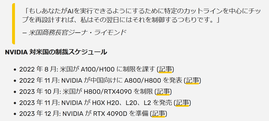 米商務長官、中国に対する規制を回避するために設計されたAIチップは翌日から禁止されると発言