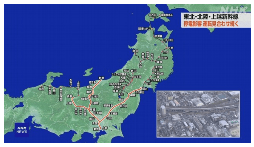東北・上越・北陸新幹線 一部区間運転見合わせ 停電の影響