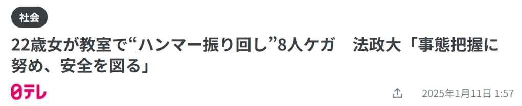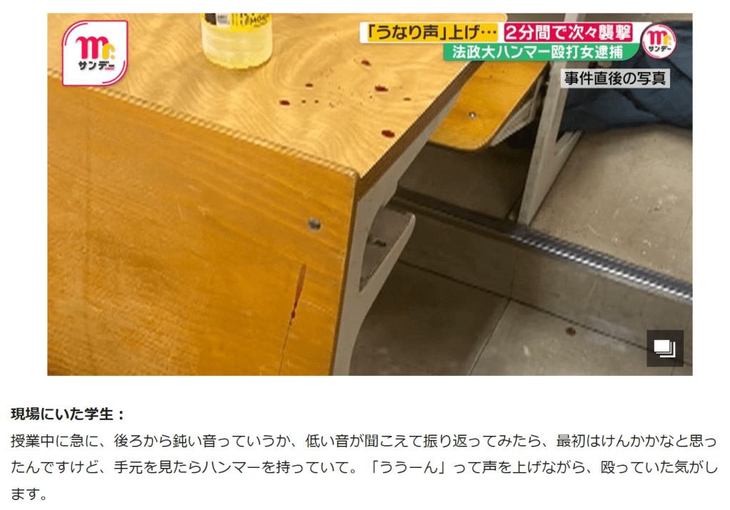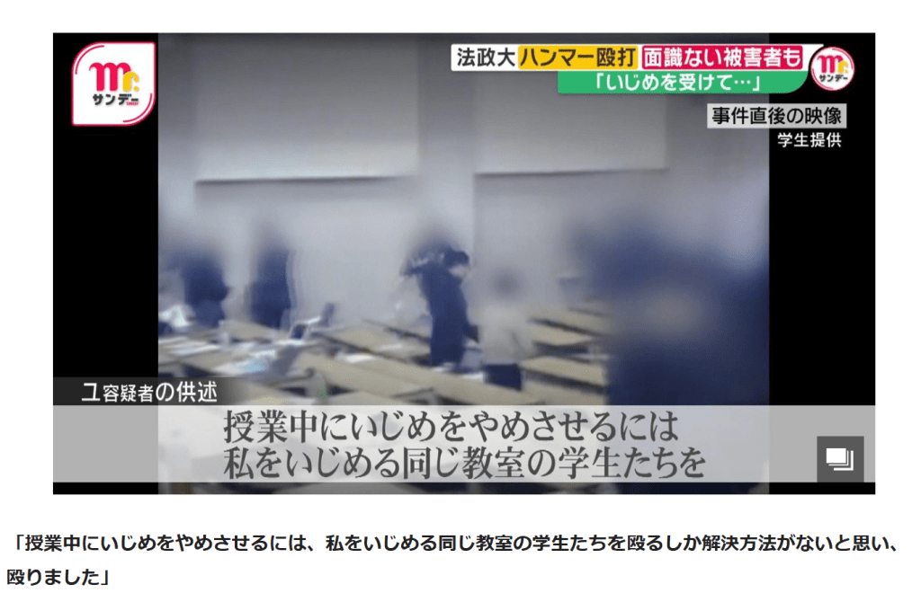 【何が】「私をいじめる学生たちを殴るしか解決方法がないと思った」事件2カ月前にも“別の男子生徒を殴った”か 法政大学“ハンマー襲撃”事件