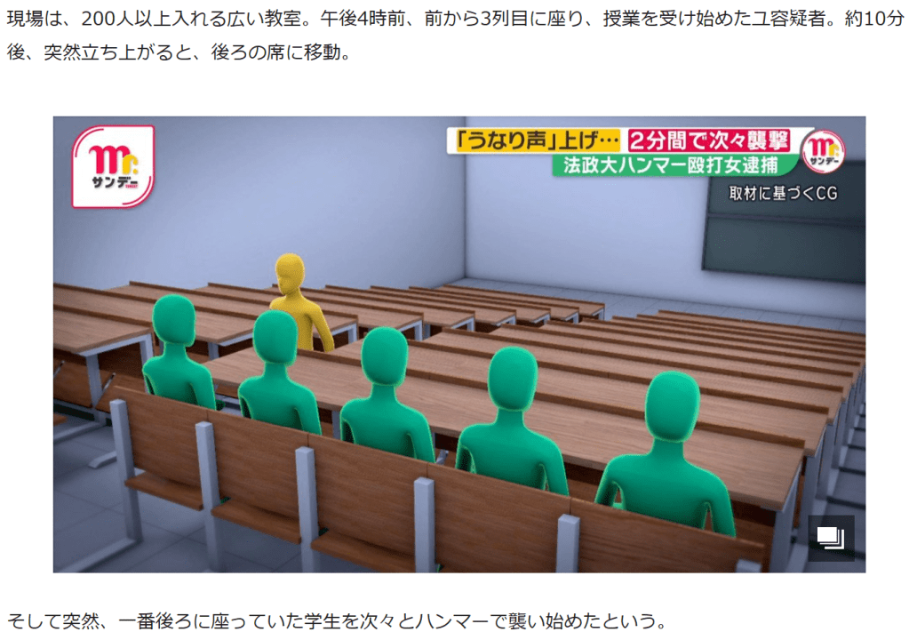 そして突然、一番後ろに座っていた学生を次々とハンマーで襲い始めたという。