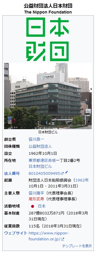 日本財団https://ja.wikipedia.org/wiki/%E6%97%A5%E6%9C%AC%E8%B2%A1%E5%9B%A3