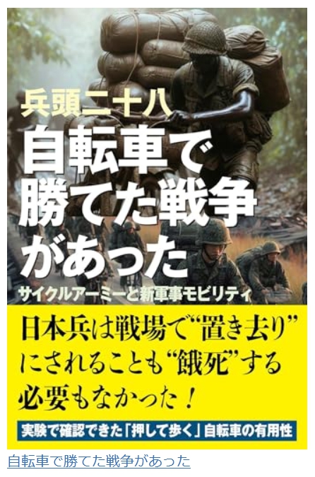 だが、1950年代のベトナム兵たちが主用したような「押して歩く自転車」を、兵糧輸送と患者後送の手段として役立てる着想さえあったなら、その餓死者数はゼロにおさえられた可能性があると著者は説く。