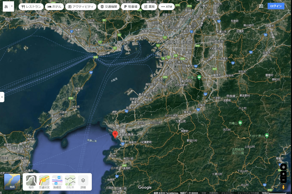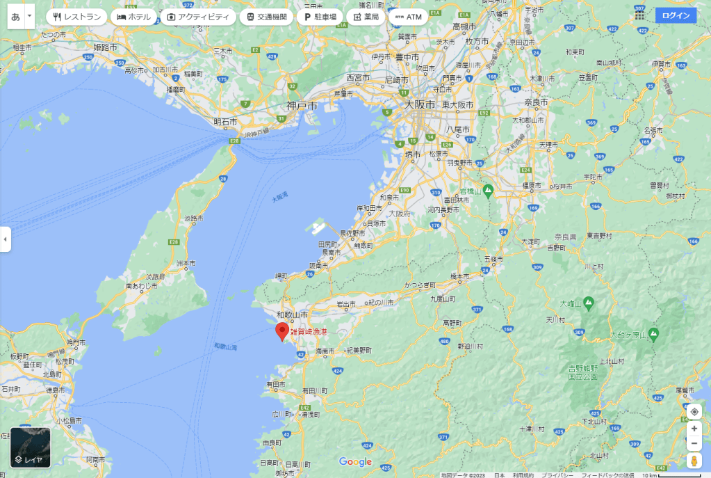 雑賀崎漁港は和歌山市の南西部にある港です。和歌山市のウェブサイトによりますと底引き網漁が盛んだということです。近くには番所庭園という観光地もあります。