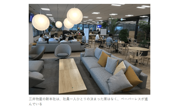 三井物産の新本社は、社員一人ひとりの決まった席はなく、ペーパーレスが進んでいる