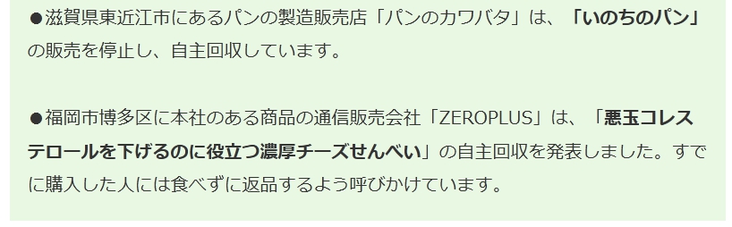 ●福岡市博多区に本社のある商品の通信販売会社「ZEROPLUS」は、「悪玉コレステロールを下げるのに役立つ濃厚チーズせんべい」の自主回収を発表しました。すでに購入した人には食べずに返品するよう呼びかけています。