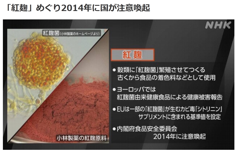 「紅麹」をめぐっては、2014年に内閣府の食品安全委員会が、紅麹菌を由来とするサプリメントの摂取が原因と疑われる健康被害がヨーロッパで報告されているとして、注意喚起を行っています。