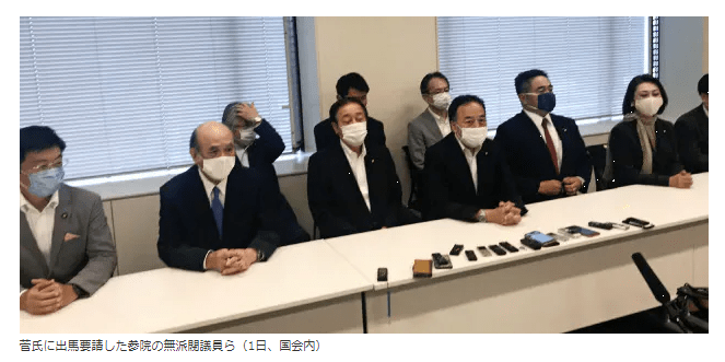 翌9月1日には島村大氏や三宅伸吾氏ら参院議員11人が菅氏に出馬を要請した。こちらも全員が「無派閥・非世襲」で、参院当選2回以下が大半を占める。両グループとも菅氏を支持する議員の集まりで、定期的に会合を開く。