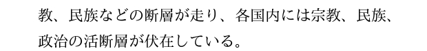 そして今再び歴史の表層に刻み込まれたさまざまな対立が中東地域各地で、時に武力紛争として露出してきたのである。