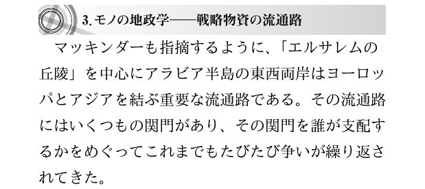 中東地域では、今も昔も「エルサレムの丘陵」を支配する者が石油などのモノや宗教などのコトの流通を支配する。