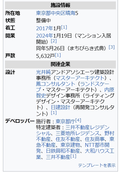 ^ 日本放送協会 (2024年4月11日). “選手村跡地に建設中のタワマン 投資目的の制限超え応募相次ぐ”. NHKニュース. 2024年6月7日閲覧。