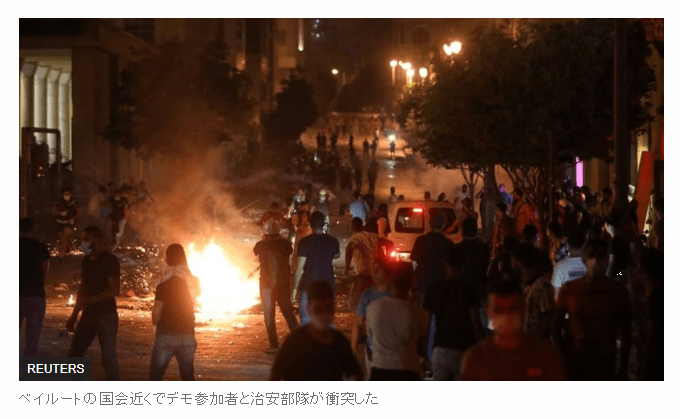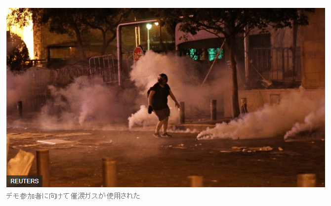 『大規模爆発で多数の死傷者が出たレバノンの首都ベイルートで6日、反政府のデモがあり、参加者らと治安部隊が衝突した。