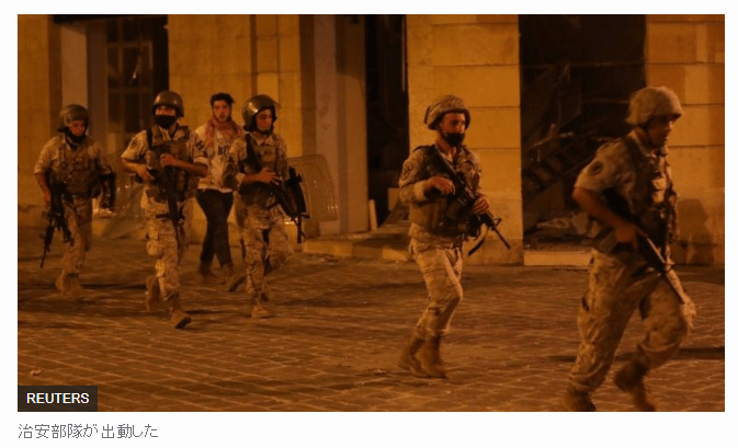 『一方、ロイター通信によるとレバノン中銀は6日、爆発が起きた港の責任者や税関トップらの銀行口座を凍結した。危険物の硝酸アンモニウムが6年にわたり放置されていた問題を調べるとみられる。政府は5日、調査結果が出るまで関係者の身柄を自宅軟禁すると発表していた。