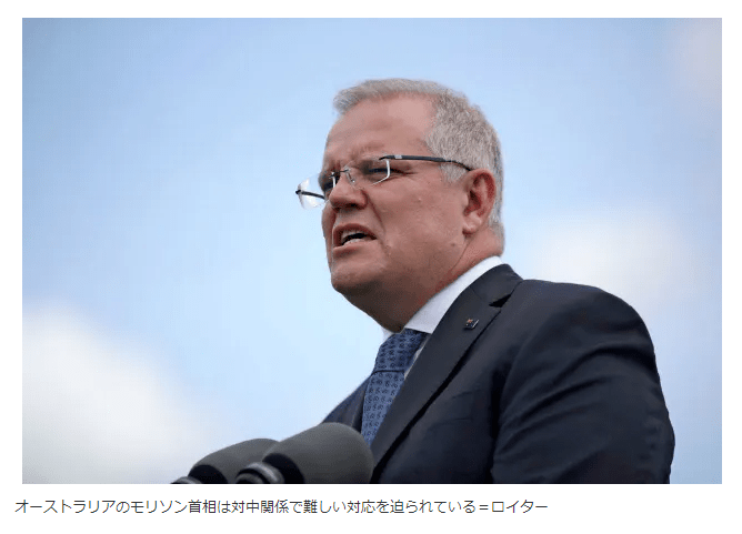 『中国共産党系メディアの環球時報(電子版)は4日、学識者の見解を基に「(中豪の)通商関係が現時点で好調でも、豪州が(対中姿勢を)軌道修正しなければ、長期的には悪化する関係が豪州経済に与える影響は顕著になるだろう」という内容の記事を掲載した。豪州が中国との貿易を良好なまま保ちたければ外交や安保での対中姿勢を改めるべきだとの「警告」と受け止められている。』