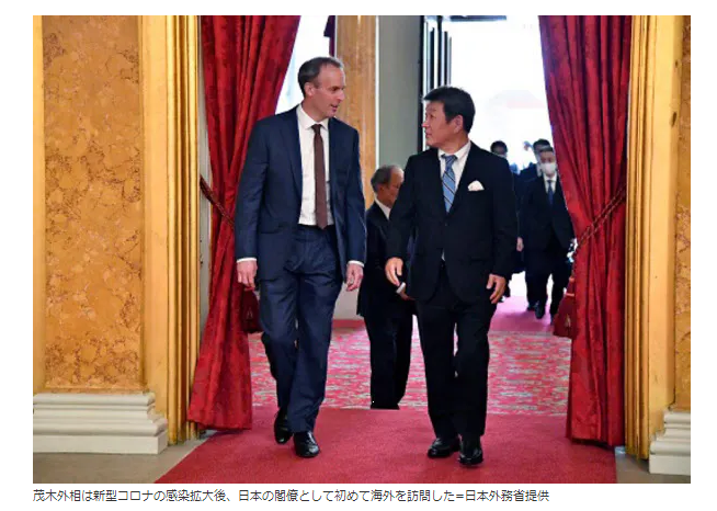 英政府によるとラーブ外相は会談後、「日本は英国の親友であり、アジアの主要な安全保障のパートナーだ」と指摘。「新型コロナや香港問題への対応などで日英は並び立っており、協調関係がさらに深まることを楽しみにしている」とコメントした。茂木、ラーブ両氏の会談は2月の東京での戦略対話以来となる。』