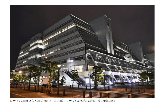 『比較的高価な百貨店中心のブランドに依存するレナウンは、米アマゾン・ドット・コムなど電子商取引(EC)の拡大や、「ZARA」などファストファッションに押され、顧客層を崩されていた。最近は新たな販路開拓を続けていたが、若者向けブランドの育成がうまくいかず、再建に向けた有効な戦略が見いだせなかったところに、新型コロナが直撃した形だ。』