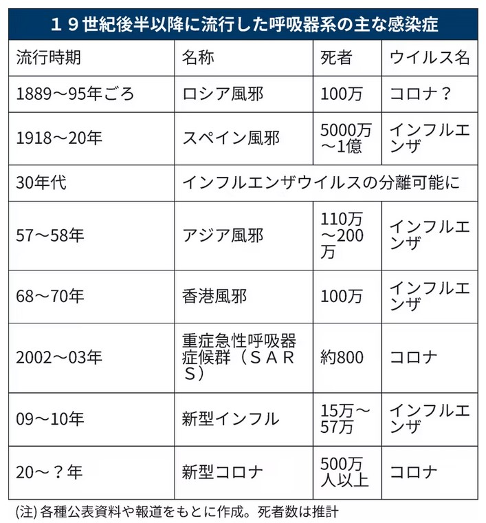 昭和大学の二木芳人客員教授は「インフルエンザウイルスが原因のスペイン風邪より感染力が強い点などもロシア風邪は新型コロナに似ている」と指摘する。