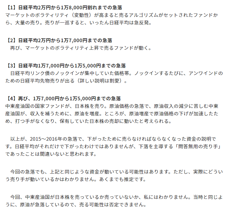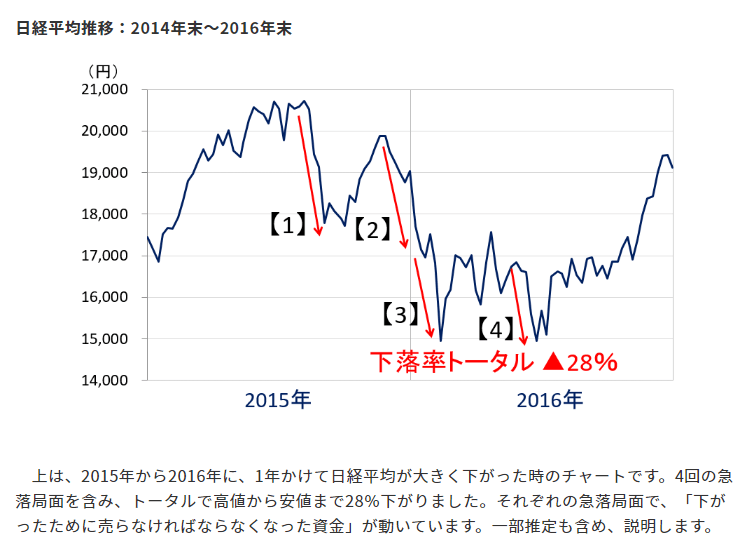 私はそこまで下がるとは考えていません。1万6,000円台で下げ止まると予想しています。今日は、そう考える理由を説明します。』