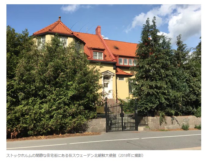 ストックホルムの閑静な住宅街にある在スウェーデン北朝鮮大使館(2018年に撮影)