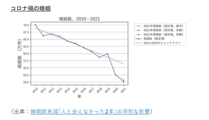 (出典:婚姻数急減「人と会えなかった2年」の深刻な影響)